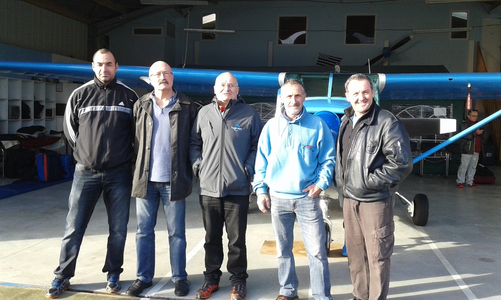Ecole de parachutisme de Bretagne Atlantique termine la saison 2015. de gauche à droite ( LE MOAL Frédéric" Président" Gilles DUCHENE " Chef Pilote" Alain LE TOUSSE " Directeur Technique" Lionel MIGNON DT adj et Porteur tandem " Didier LEMAIRE " Moniteur fédéral et vidéoman" absent sur la photo René Milin " Moniteur fédéral et vidéoman".Rendez-vous l'année prochaine avec notre staff technique