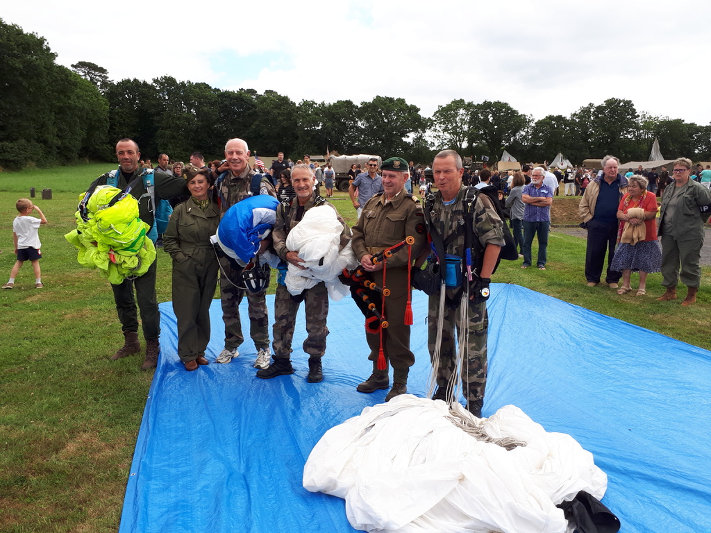 L'équipe de l'école de parachutistes de Guiscriff sautent sur un camp militaire au Faou à l'occasion du 14 juillet. Merci à la Mairie du Faou pour l'accueil et aux organisateurs de cette association" BRETAGNE 39-45 ) qui par leur action perpétue le devoir de mémoire.