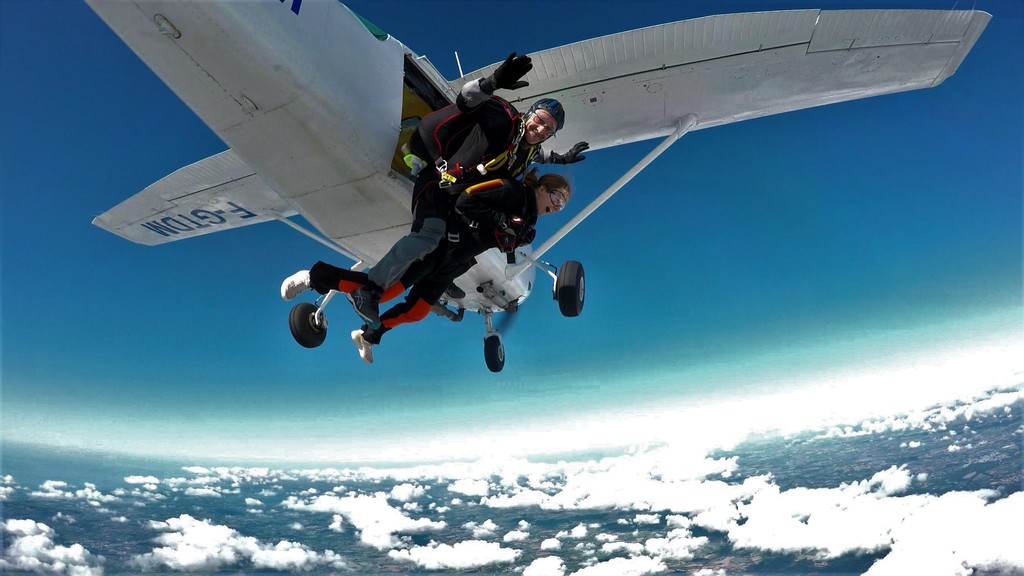 1) Le départ de l'avion et la phase la plus importante du parachutisme avec une forte source d'adrénalie.