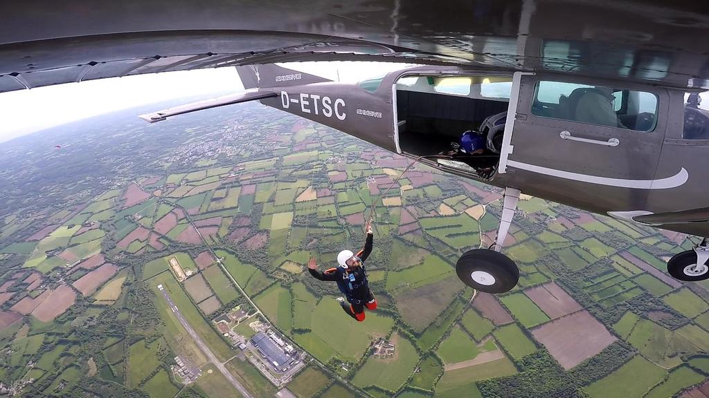 Environ trois secondes après la sortie d’avion, le parachute s’ouvre automatiquement.