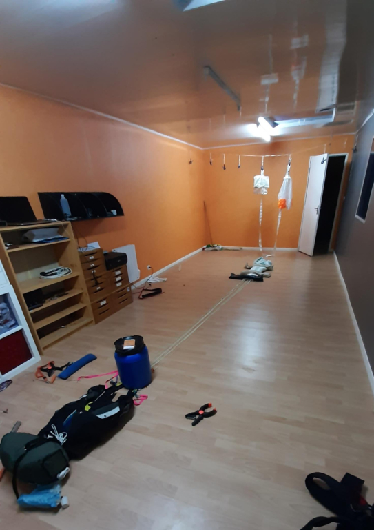 La fin de la saison à l'école de parachutisme de Scaër et le début pour l'école de l'entretien du matériel. Nous devons chaque année entretenir et plier les 32 parachutes de secours. Chaque parachute demande un entretien et une vérification permanente du harnais-systéme de sécurité- parachute de secours afin de permettre à tous les élèves d'utiliser le matériel en toute confiance.