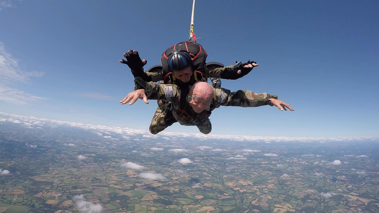 Notre ami Jean claude de St Thurien à opté pour un saut en parachute pour fêter ses 80 ans. Je me sens en forme pour effectuer un sport à sensation. Un rêve de toujours que je viens de réaliser à l'école de parachutisme de Guiscriff en compagnie de Lionel et du caméraman Jef. Je ne regrette pas d'avoir effectué cette expérience qui m'a procuré 45 secondes d'émotions et de bonheur. A refaire à l'occasion et pour mes 90 ans...