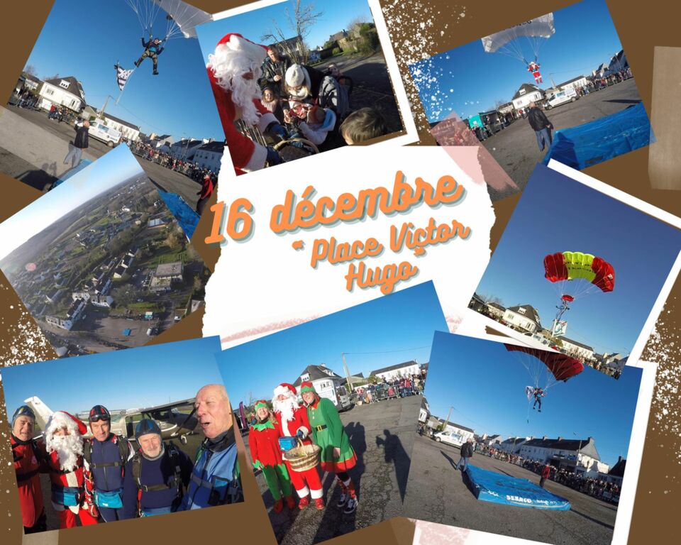 Toute l'équipe des parachutistes et les elfes de Scaër présent sur la place Victor Hugo le 16 décembre pour accueillir le Père Noël.