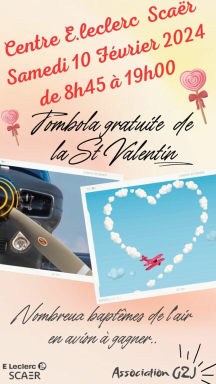 Grande tombola gratuiteau centre E.Leclerc de Scaër le samedi 10 Février de 8h45 à 19h00.